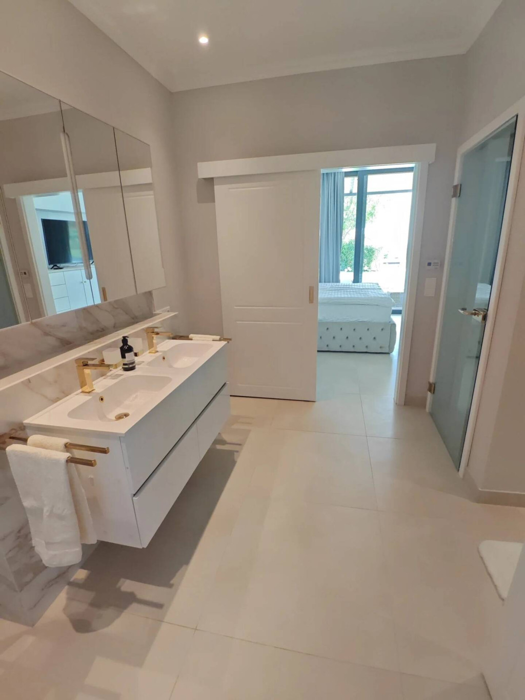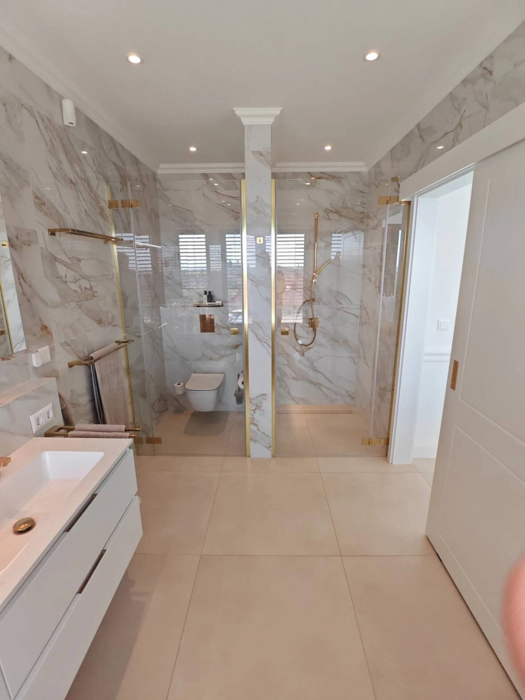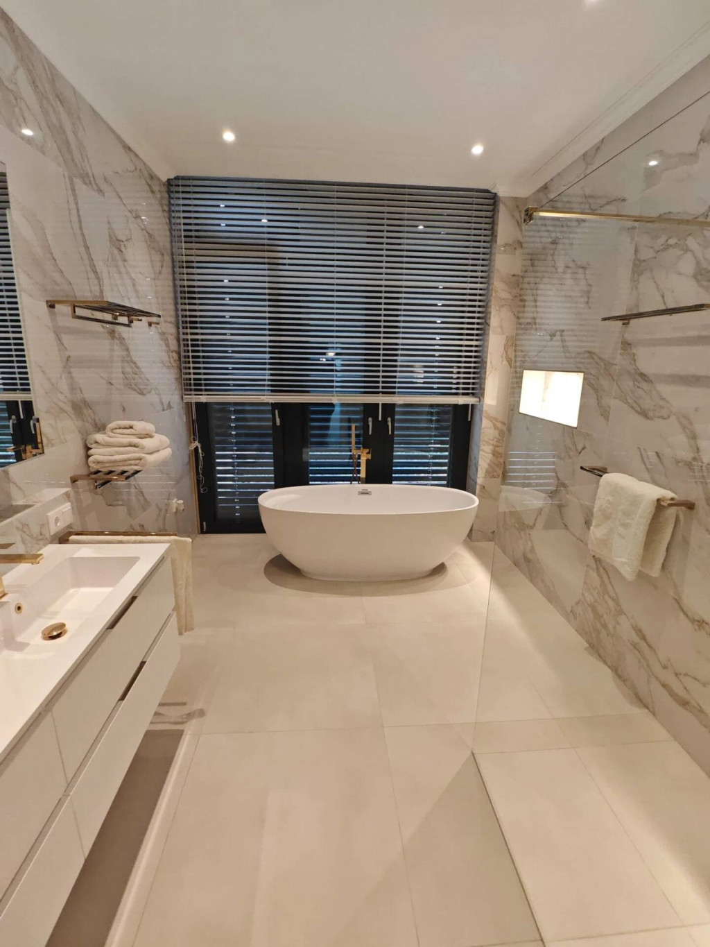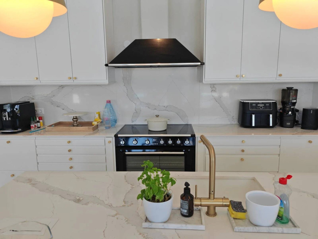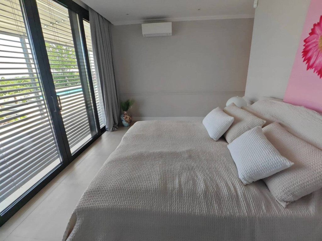 A közel 383 m²-es, két szintes lakótér tágas, fényben gazdag helyiségekkel és harmonikusan áramló terekkel fogadja az érkezőt. A nappali, az étkező és a prémium minőségben felszerelt, modern konyha egyetlen nagyvonalú élettérré olvad össze, amely közvetlen kapcsolatban áll a teraszokkal és a kerttel, így a beltéri és kültéri életterek szinte észrevétlenül kapcsolódnak össze. Így ideális teret alkotva a mindennapokhoz, családi együttlétekhez és elegáns vendéglátáshoz egyaránt. Az öt hálószoba mindegyike saját fürdőszobával rendelkezik, biztosítva a maximális kényelmet és privát szférát, miközben a több, külön bejárattal kialakított lakrész rugalmas használatot tesz lehetővé – vendégek, home office vagy akár többgenerációs együttélés számára is.