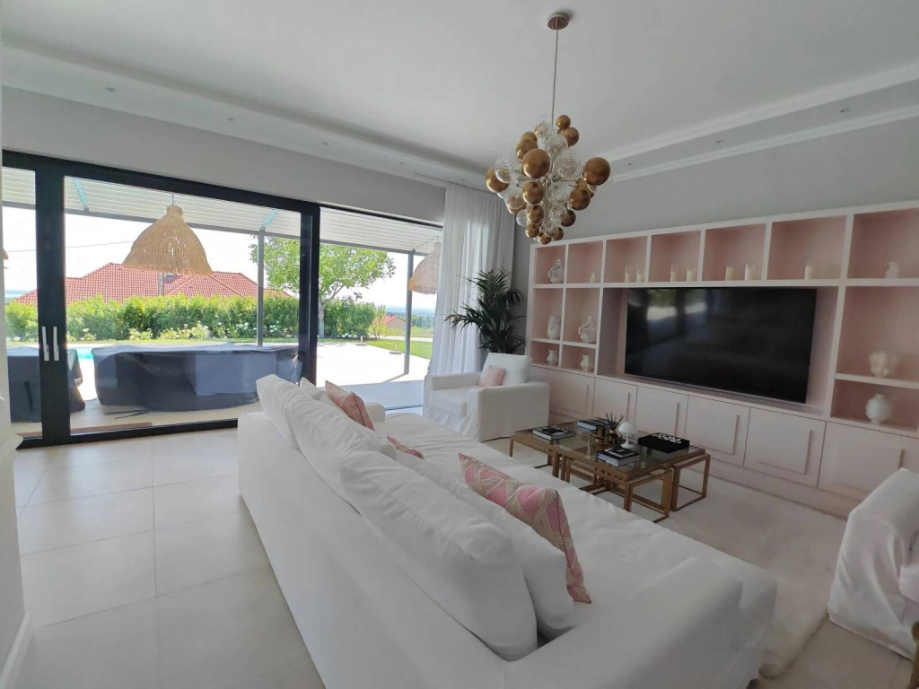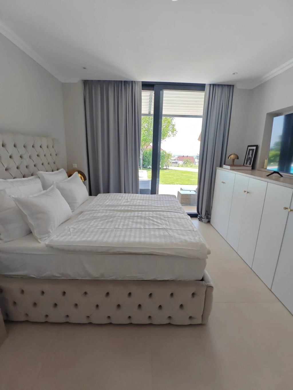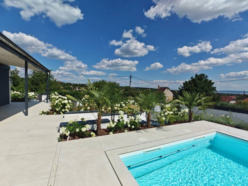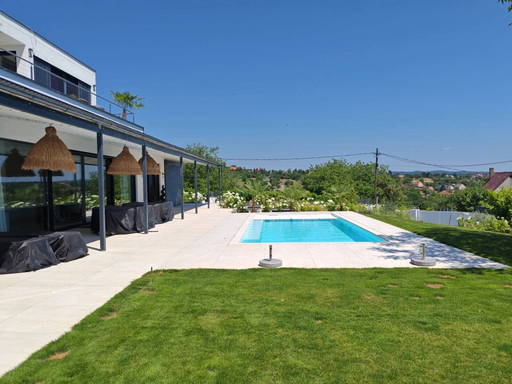 The nearly 383 m² of living space on two floors welcomes visitors with spacious, light-filled rooms and harmoniously flowing spaces. The living room, dining room and premium-quality, modern kitchen merge into a single, generous living space that is directly connected to the terraces and garden, so that the indoor and outdoor living spaces are linked almost imperceptibly. This creates an ideal space for everyday living, family gatherings and elegant entertaining. Each of the five bedrooms has its own bathroom, ensuring maximum comfort and privacy, while the separate entrance to the living area allows for flexible use – for guests, a home office or even multi-generational living.The villas technical equipment exceeds all expectations of the modern premium category. The heat pump heating system, underfloor heating and state-of-the-art air conditioning technology ensure balanced comfort all year round, while energy-efficient operation is sustainable in the long term. The high-performance solar panel system and energy storage allow the property to be almost completely energy independent, which not only means comfort but also significant value retention. This home not only offers luxury but is also a conscious and valuable long-term investment.The carefully landscaped garden, automated, coverable pool and exclusive outdoor lighting create a private wellness oasis where everyday life slows down and relaxation takes on a new meaning. The proximity to nature, the silence and the panorama give the property a special atmosphere at all times of the day. Every detail serves to make this home not just a living space, but a living environment that defines quality of life.The special value of the property is further enhanced by its own berth in the Keszthely marina, which provides direct access to Lake Balaton and offers a lifestyle that is truly available to only a few.This property is more than just a home: it is a consciously created living space where modern luxury, technology, and nature are in perfect balance. It is the ideal choice for those who are looking for quality, not compromise. For more detailed information and to arrange an appointment, please call us! If you are looking to buy or sell, feel free to contact Otthon Managers consultants! We will help you achieve your goals anywhere in the country! If you need a favorable loan offer, our advisor will select the most suitable one for you from the offers of several banks following a free consultation! Have a wonderful and productive day!