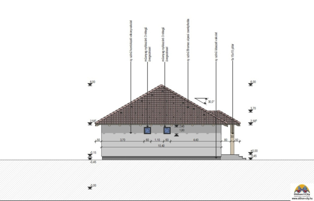• Körbejárható ház (40 cm járda, vízelvezetéssel)