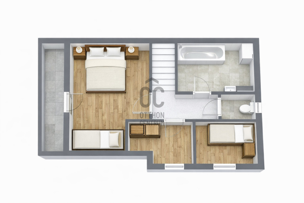 Az emeleten három hálószoba és egy fürdőszoba szolgálja a család kényelmét és kényelmes elosztást biztosít.