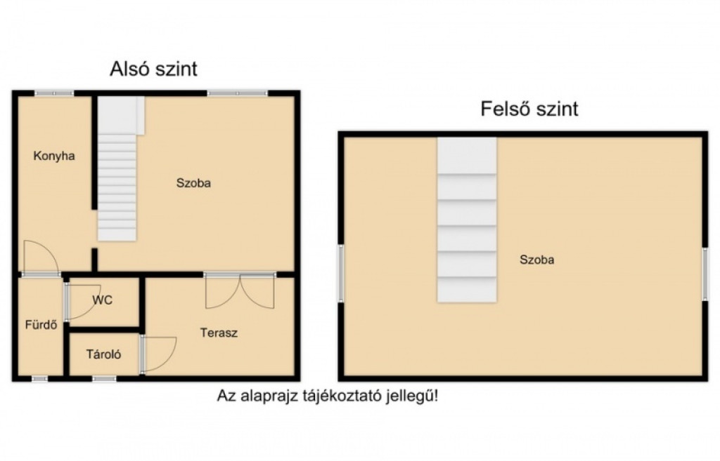 földszint: szoba, konyha fürdüszoba, wc, tároló, terasz