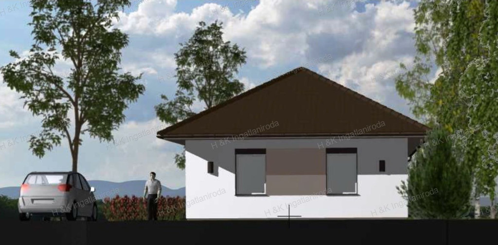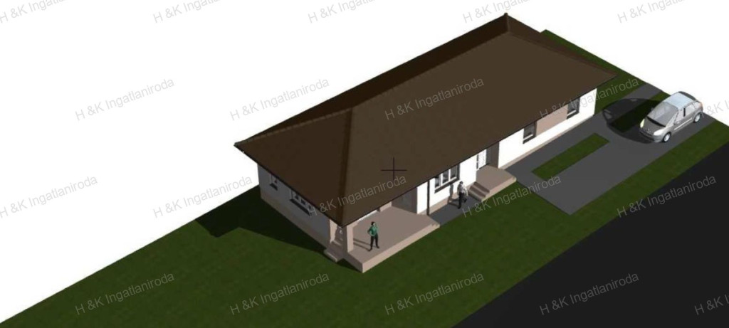 A családi ház földszintes kialakítású, körben kontyolt, 30 ° hajlásszögű nyeregtetővel kerül kialakításra.