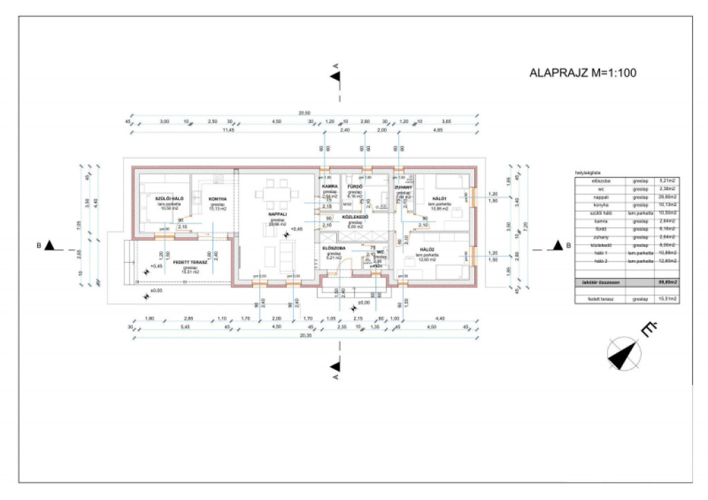 Lakóterület: nettó 100 m²