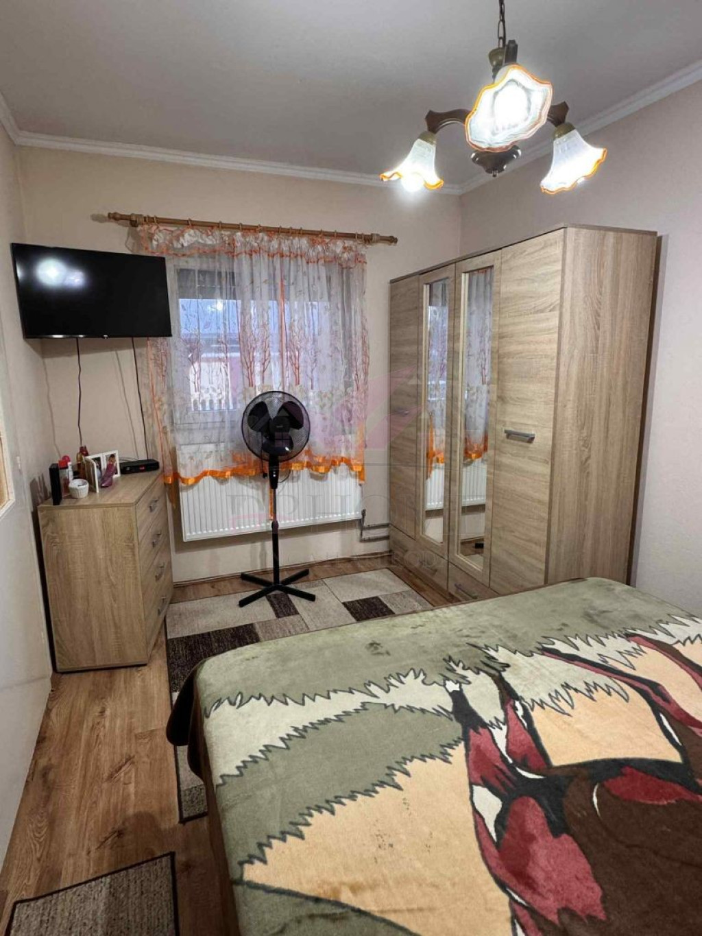 - Burkolatok: nappali-étkezőben és a hálószobában laminált padló, az ingatlan többi helyiségében kerámia