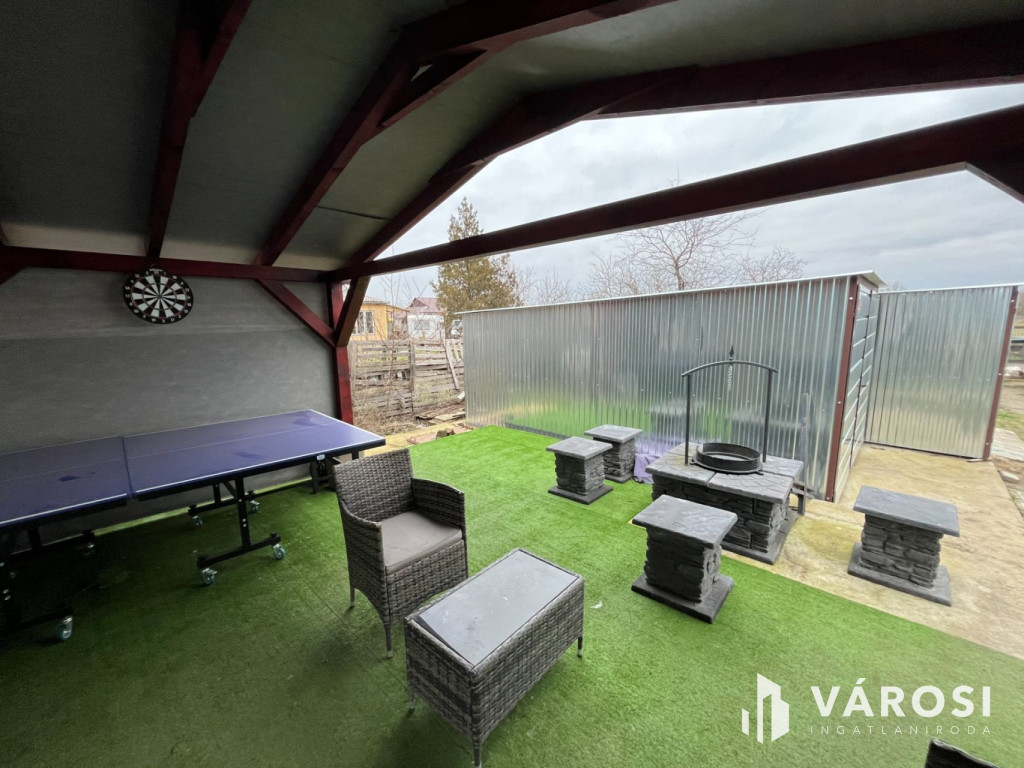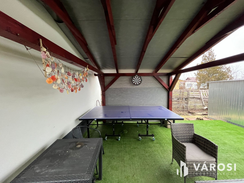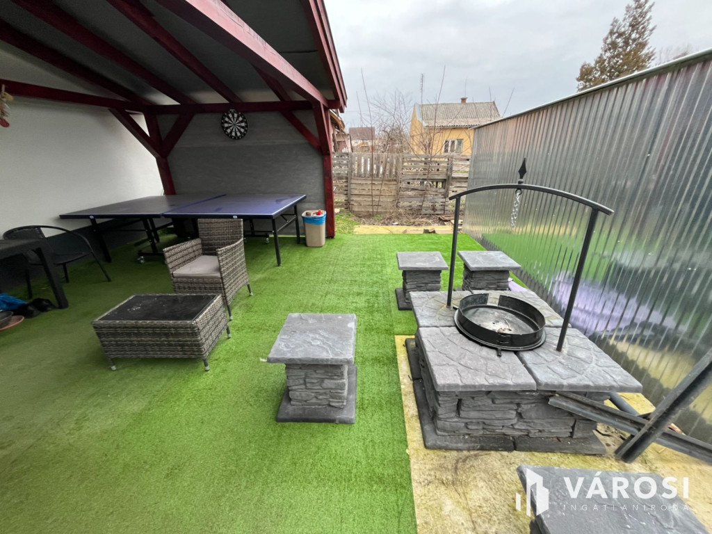 Az új nyílászárók, redőnyök és szúnyoghálók gondoskodnak a lakás kényelméről és energiahatékonyságáról. A kertvilágítás és a fúrt kút extra funkcionalitást és esztétikumot kölcsönöz a környezetnek, a filagória és a kerti grillezőhely pedig remek lehetőséget biztosít a baráti összejövetelekhez.