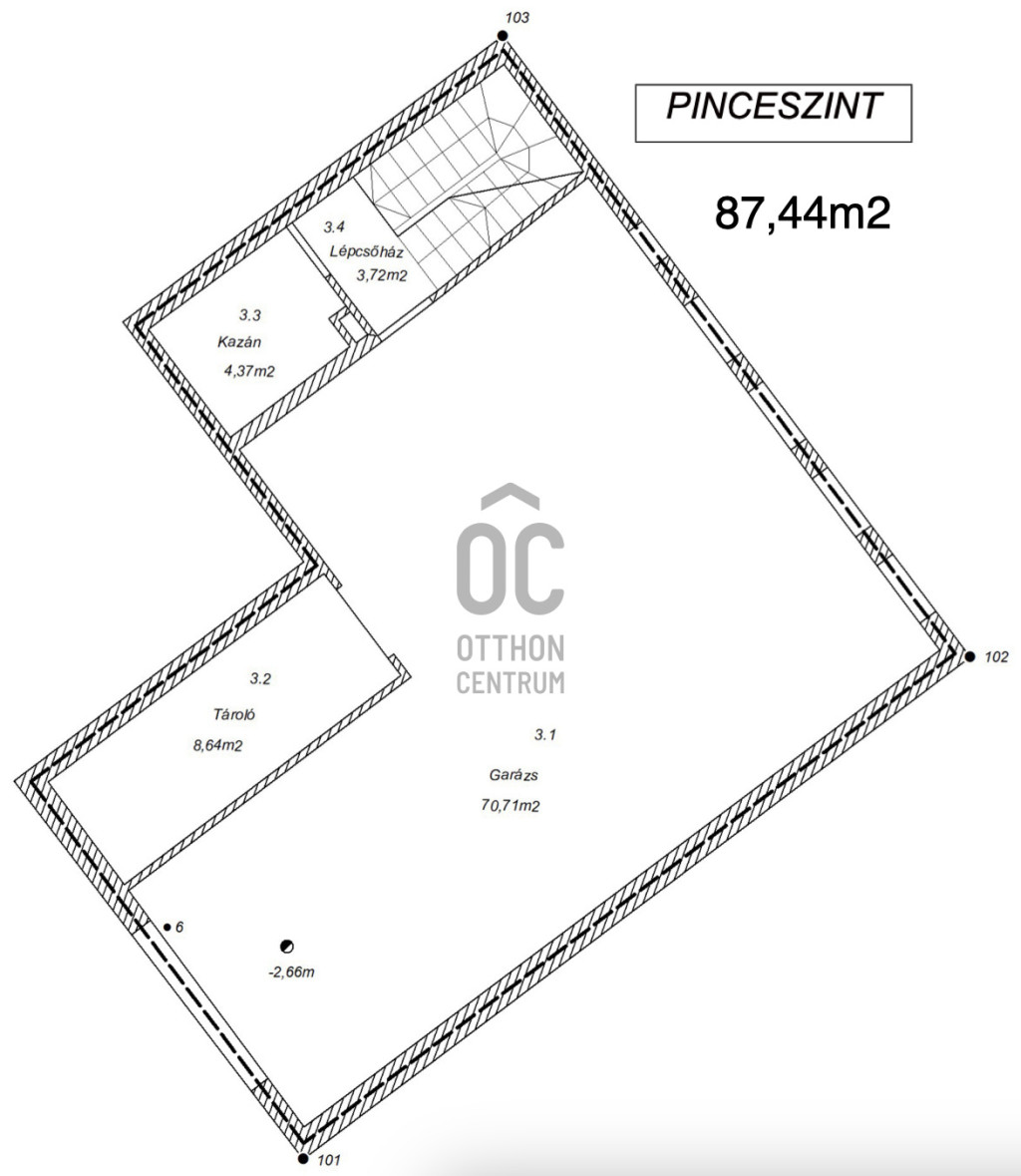 Szuterén: automata kapus garázs, nagy tárolók, gépház, belső lépcsőkapcsolattal