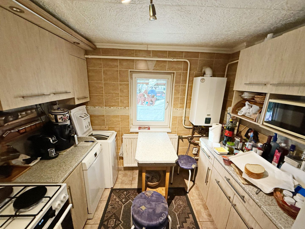 Debrecen, Luther utcán eladó 1970-ben téglából épült, cserepes lemez tetős, 78 nm-es, 3 szobás, gáz cirkó fűtésű, klimatizált, műanyag nyílászárós, alu vezetékelt, önálló családi ház