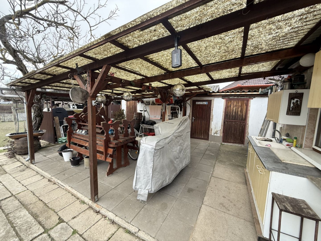 A telken több melléképület, fedett terasz és fedett kocsi beálló is van. A ház alatt egy közel 20 m2- es pince található.