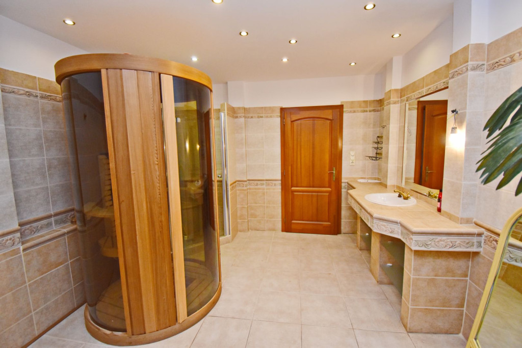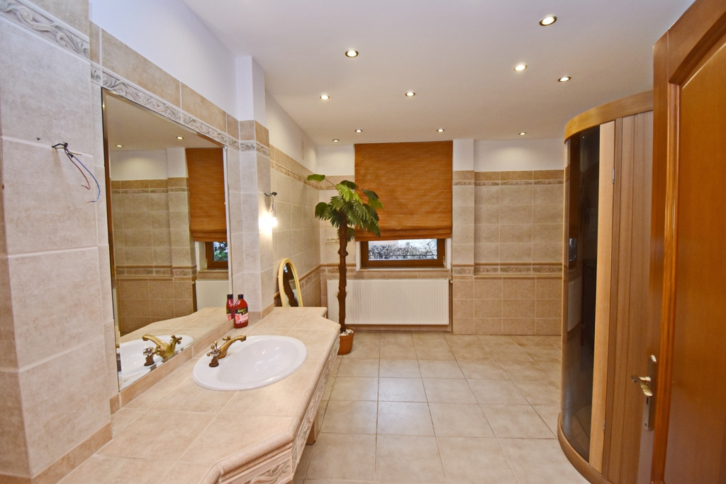 *Nagyméretű fürdőszoba egyedi tervezésű zuhanyzóval