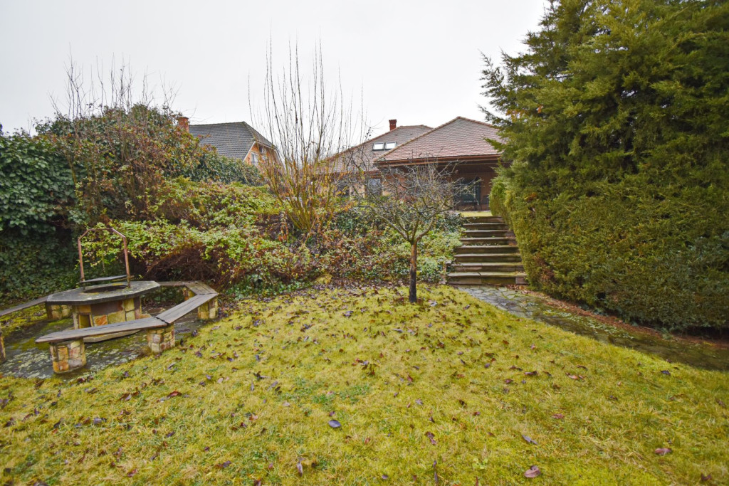 A telken a hátsó szomszéd megközelítésére szolgalmi jog került bejegyzésre, amely kerítéssel leválasztott, így a kert intimitását nem zavarja.