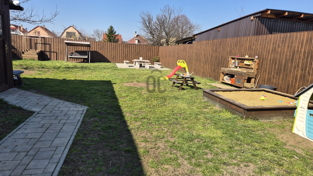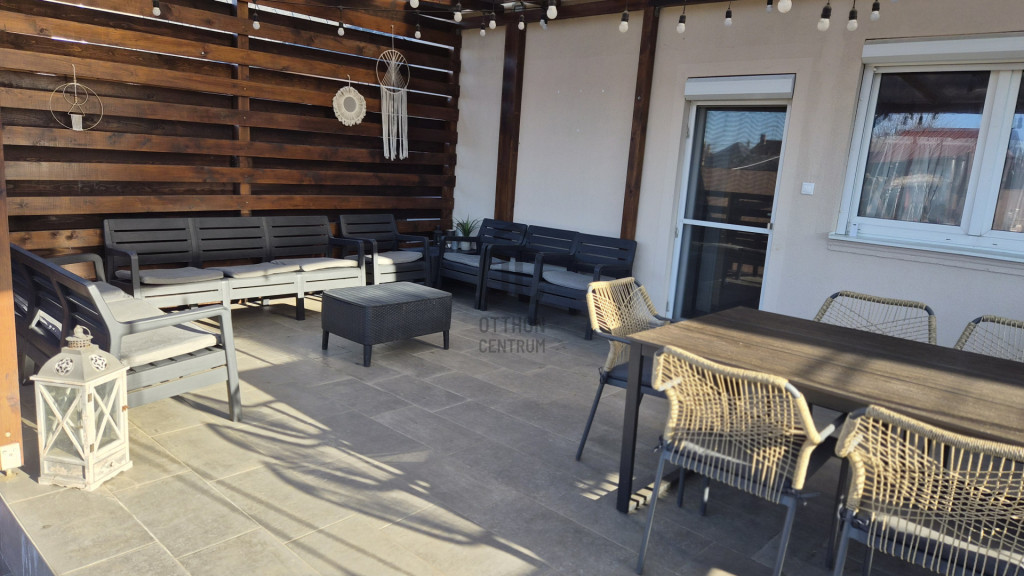 Az otthon kényelméhez két klíma, kombi kazán és egy okosrendszer is hozzájárul, amelyről távolról vezérelhető a kapu, a fűtés, a klímák, a riasztó és a világítás. A 700 m²-es telek rendezett és élhető: 50 m²-es előkert díszfákkal, 40 m² fedett terasz, saját szalonnasütő, játszótér, vetemény és kétállásos beálló. Új tetőlemez, új kerítés, műanyag nyílászárók, 3 fázisú áram, 4 zónás riasztó és külső kamerák teszik biztonságossá és időtállóvá.