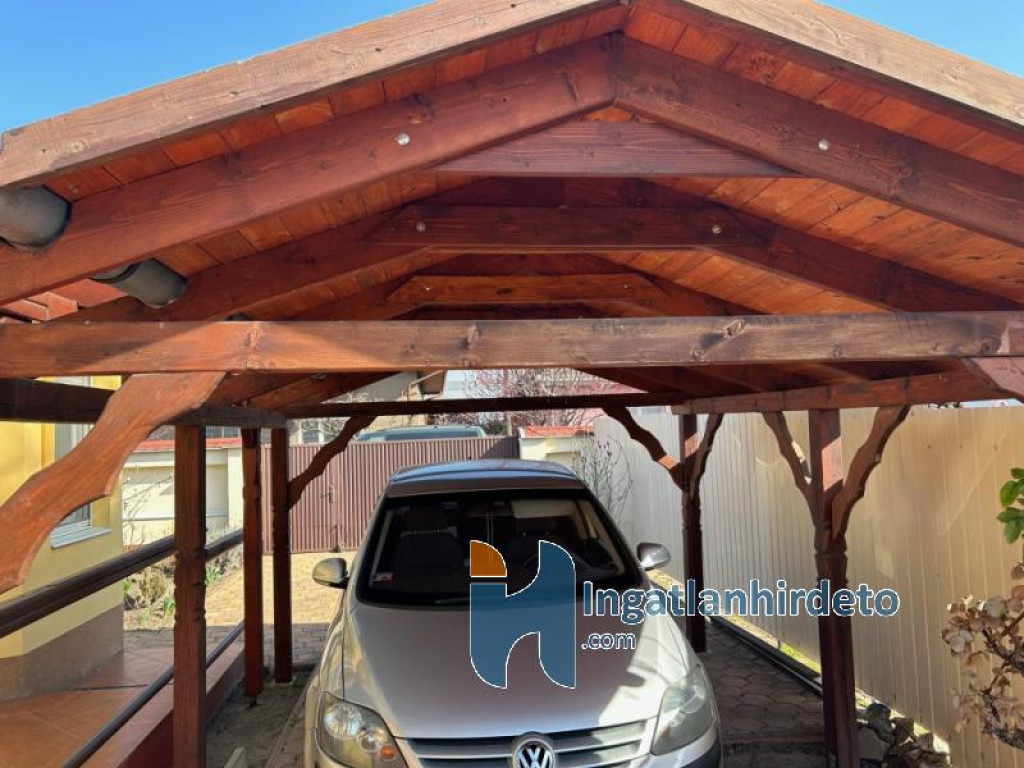 A házhoz tartozó kert rendezett és hangulatos, ideális helyszíne lehet a kikapcsolódásnak vagy akár családi, baráti összejöveteleknek. A fedett autóbeálló és a praktikus kerti faház tovább növeli az ingatlan használati értékét.