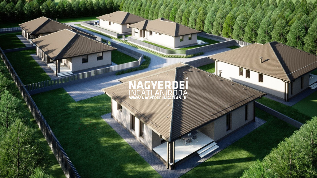 Júliakert csendes részén új építésű, modern családi ház eladó.Földszintes kialakítású, kiváló elosztással és korszerű műszaki tartalommal, 607 nm-es telken amerikai konyhás nappali, kamra, négy hálószoba, külön fürdő és WC, fedett terasz, garázs kerül kialakításra 139,44 nm-en.