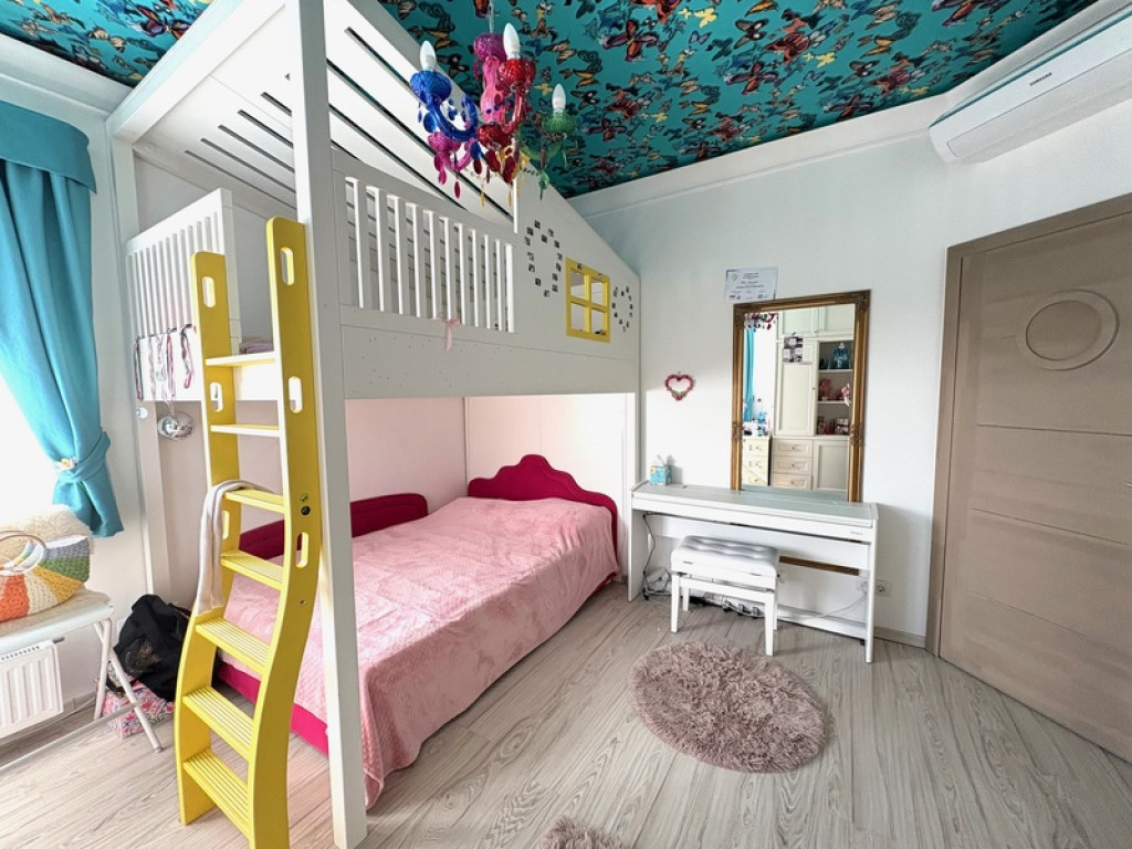 A ház gyönyörű állapotban van, tágas, világos terekkel és egyedi kialakítással. A hatalmas élettér, a praktikus alaprajz, a kényelmes méretű hálószobák, a nagy méretű gardróbok és a komfortos fürdőszobák harmónikusan szolgálják a mindennapi kényelmet.