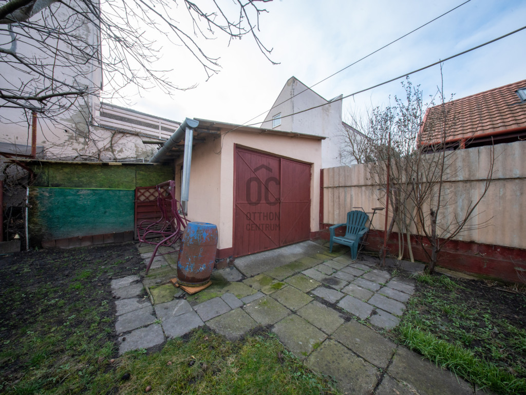A telken található egy műhellyé alakított garázs, két kerti tároló, az öntözést pedig fúrt kút és hidroforos szivattyú segíti. Parkolás a ház előtt megoldott. A környék infrastruktúrája kiváló: buszmegálló pár perc sétára, egyetemek, oktatási intézmények, üzletek, piac, gyógyszertár mind könnyen elérhetők.