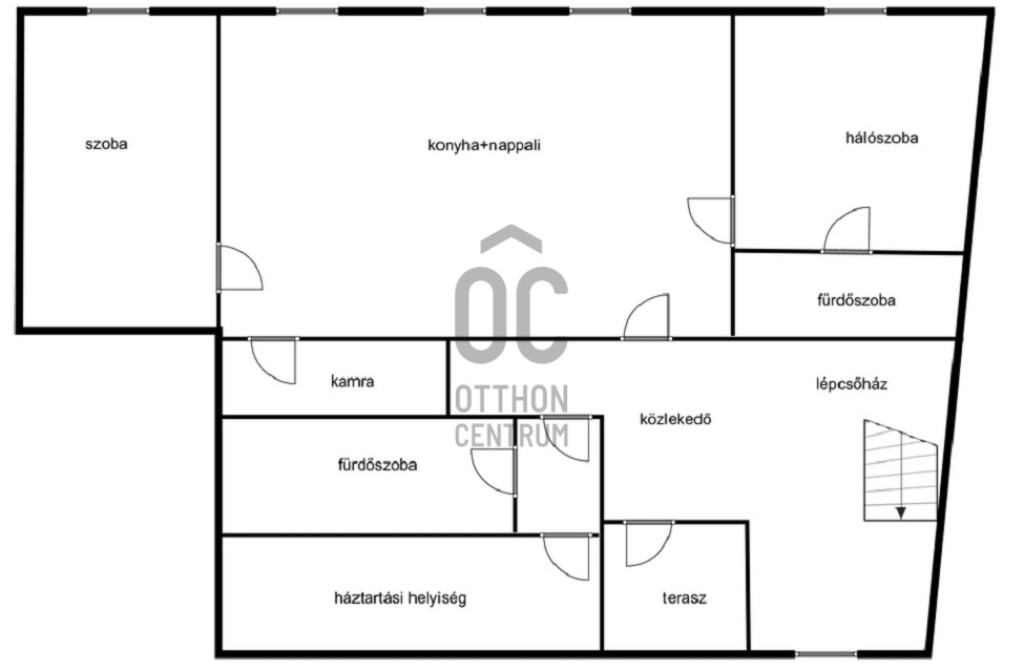 - földszint cc 100nm-s : nappali-konyha, 2 hálószoba , kamra, fürdőszoba, és egy külön iroda helyiség mosdóval , található