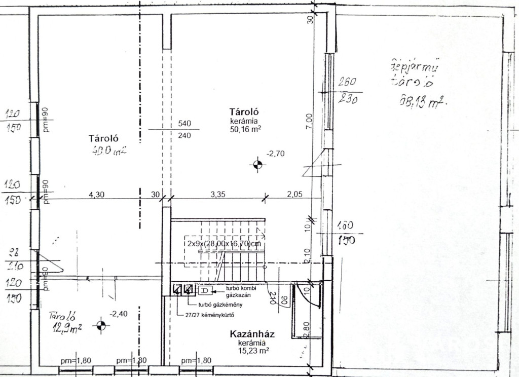 -Pince: tárolók, kazánház, valamint 3 gépjármű számára kényelmes parkolás elektromos garázskapuval