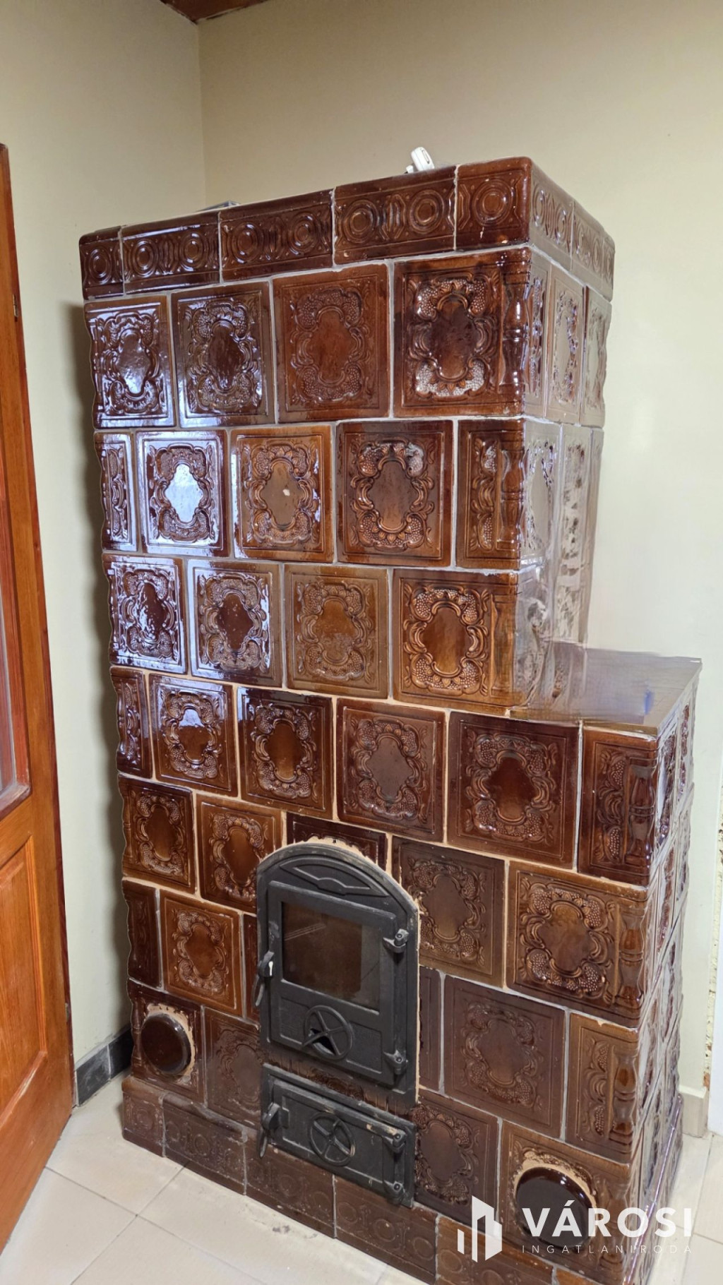 A ház szíve egy 92 m²-es amerikai konyhás nappali, hatalmas üvegfelületekkel, ahonnan a kert látványa tárul elénk. A nappaliban egy gyönyörű cserépkályha ad meghitt hangulatot – igazi közösségi tér, ahol a család apraja-nagyja könnyen együtt lehet.