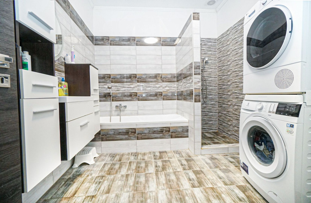 - Fürdőszoba zuhanyzóval és káddal felszerelt