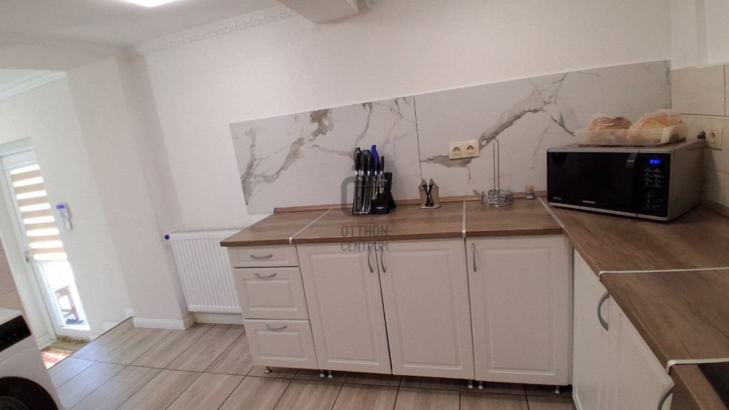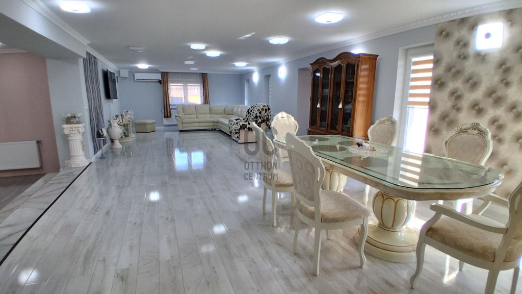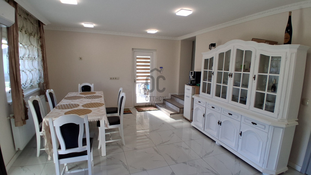 A ház összhatása teljes mértékben új építésű érzetet nyújt – minden burkolat, gépészet és műszaki megoldás korszerű.