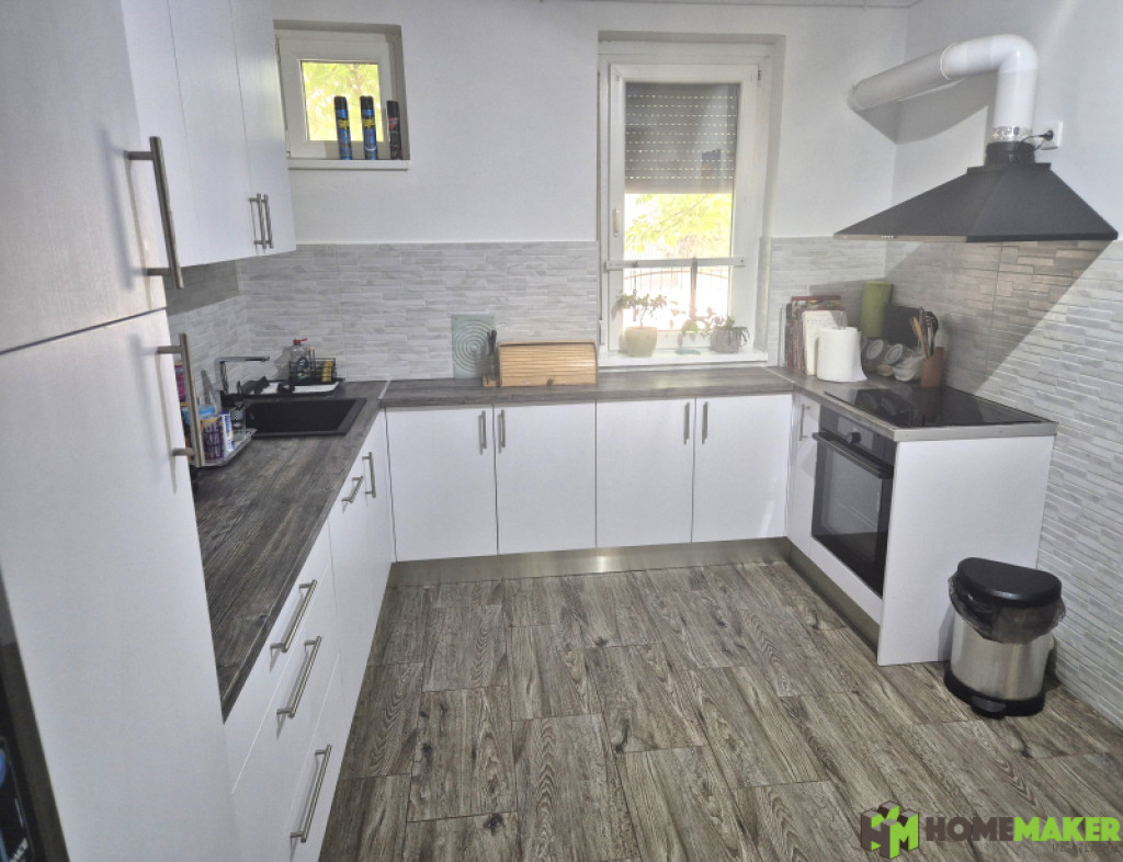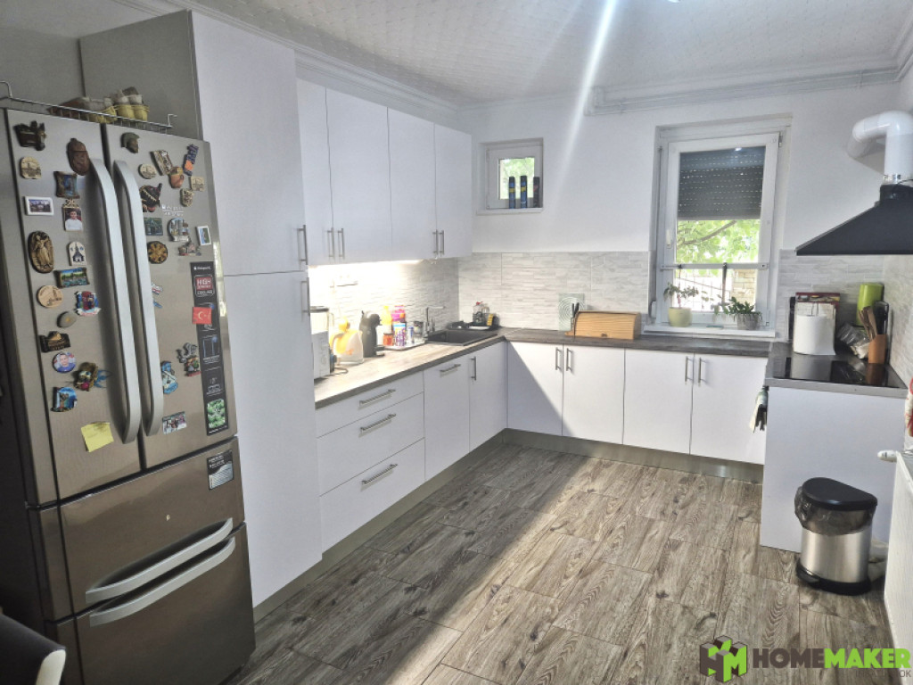- a földszinten a kicsit szeparált konyha vadonatúj bútorral és garanciális jó minőségű háztartási gépekkel van felszerelve