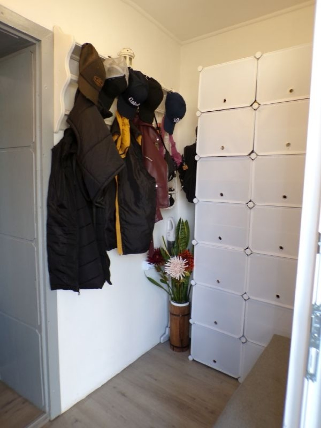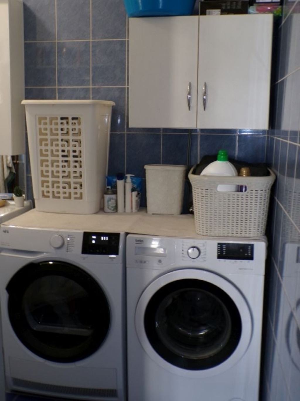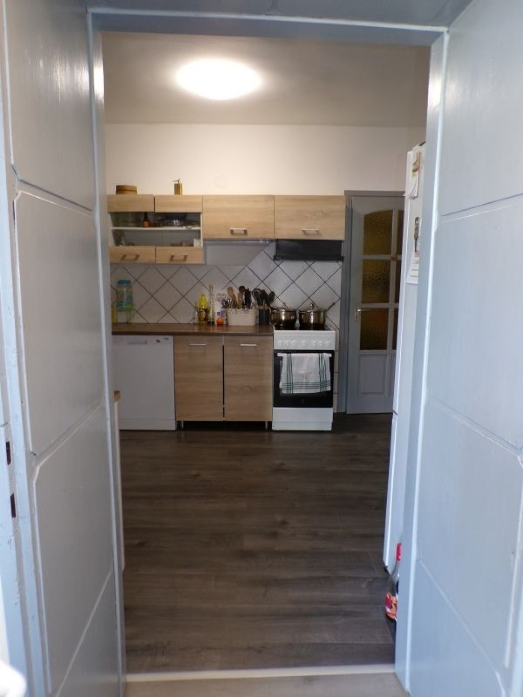 - Burkolatok: A fürdőszobában hidegburkolat, a többi helyiségben laminált padló. A
