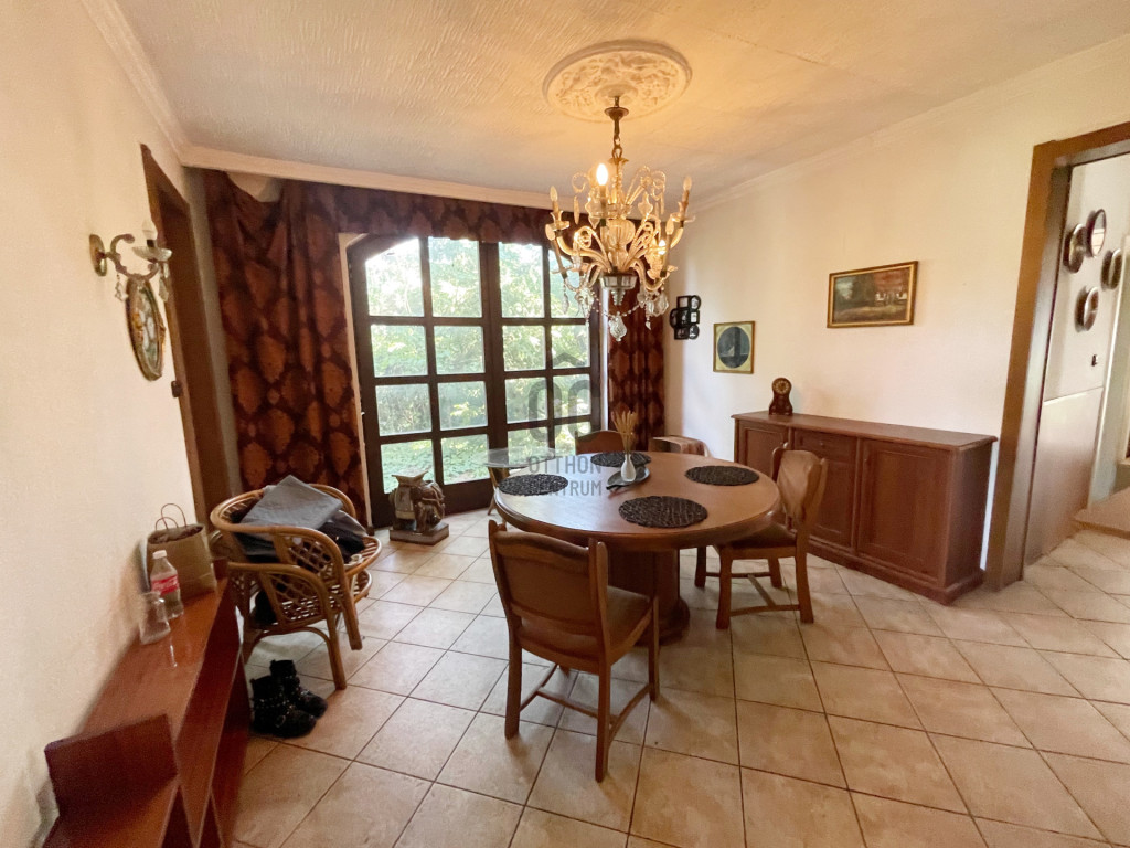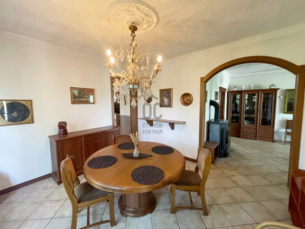 Eladó egy kivételes elhelyezkedésű, kétszintes családi ház Dunakeszi egyik legkedveltebb részén, a Duna közvetlen közelében, Révdűlő városrészben. Az ingatlan nettó 170 m²-es, tágas, világos terekkel rendelkezik, összesen 5 teljes értékű és egy félszobával, valamint 572 m²-es, gondozott telekkel, saját garázzsal. A ház kialakításának és elosztásának köszönhetően ideális többgenerációs család számára, de befektetésként is kiváló lehetőség, akár vendégházként vagy apartmanként is hasznosítható.A földszinten egy napfényes, Dunára néző télikert kapcsolódik a tágas nappalihoz, mely harmonikus egységet alkot az étkezővel és a külön konyhával. Innen nyílik egy hálószoba vagy dolgozószoba, valamint egy sarokkádas fürdőszoba és egy külön vendégmosdó. A veranda kellemes, elvonulásra alkalmas tér, ahonnan a zöld kertre nyílik kilátás. A konyha alatt kis méretű pince biztosít tárolási lehetőséget.