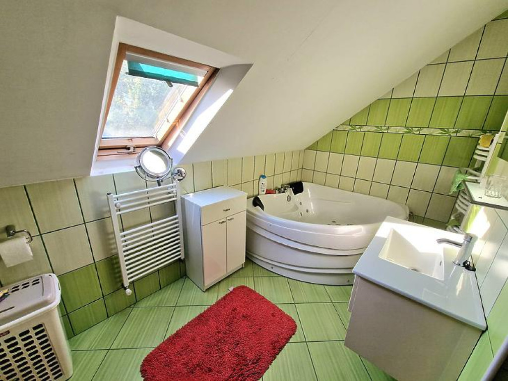 Az ingatlan egyik nagy előnye az alacsony fenntartási költség: a 4,5 kW-os napelemrendszer jelentősen csökkenti a rezsit, míg a klíma a nyári komfortot biztosítja. A fűtés többféleképpen megoldott, gáz cirkóval és vegyestüzelésű kazánnal is működtethető. A kert öntözését fúrt kút segíti.
