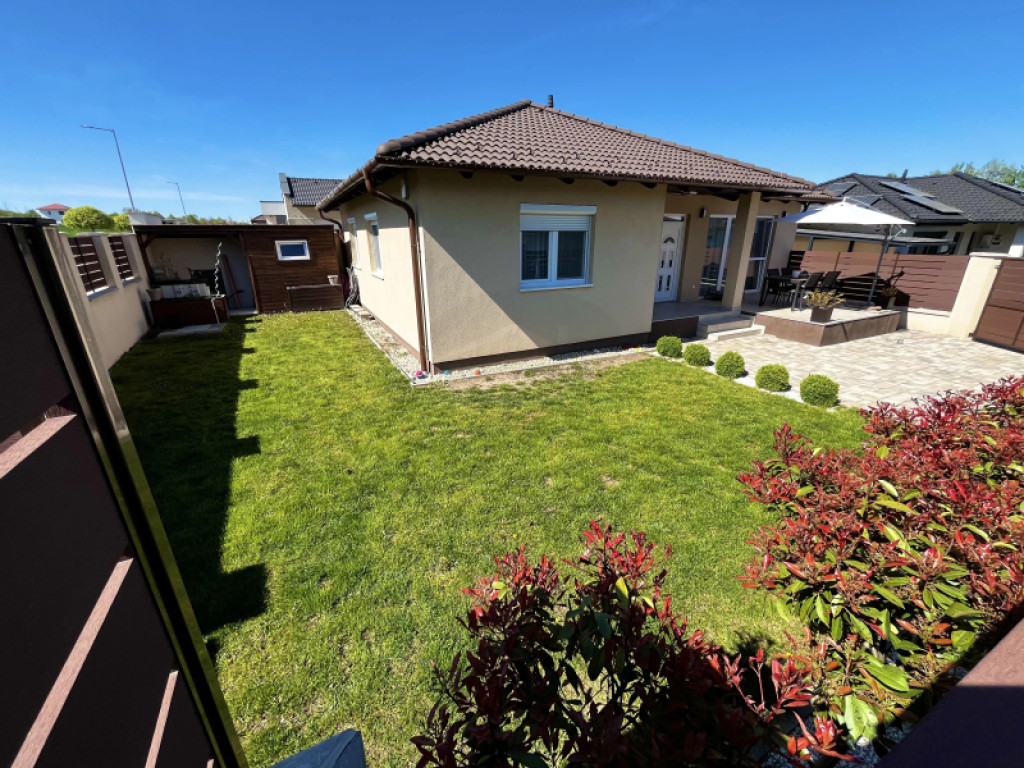 A 329 négyzetméteres telken udvari beálló biztosítja a parkolást, valamint egy tároló is rendelkezésre áll, ami a családi élethez szükséges eszközök elhelyezését megkönnyíti.