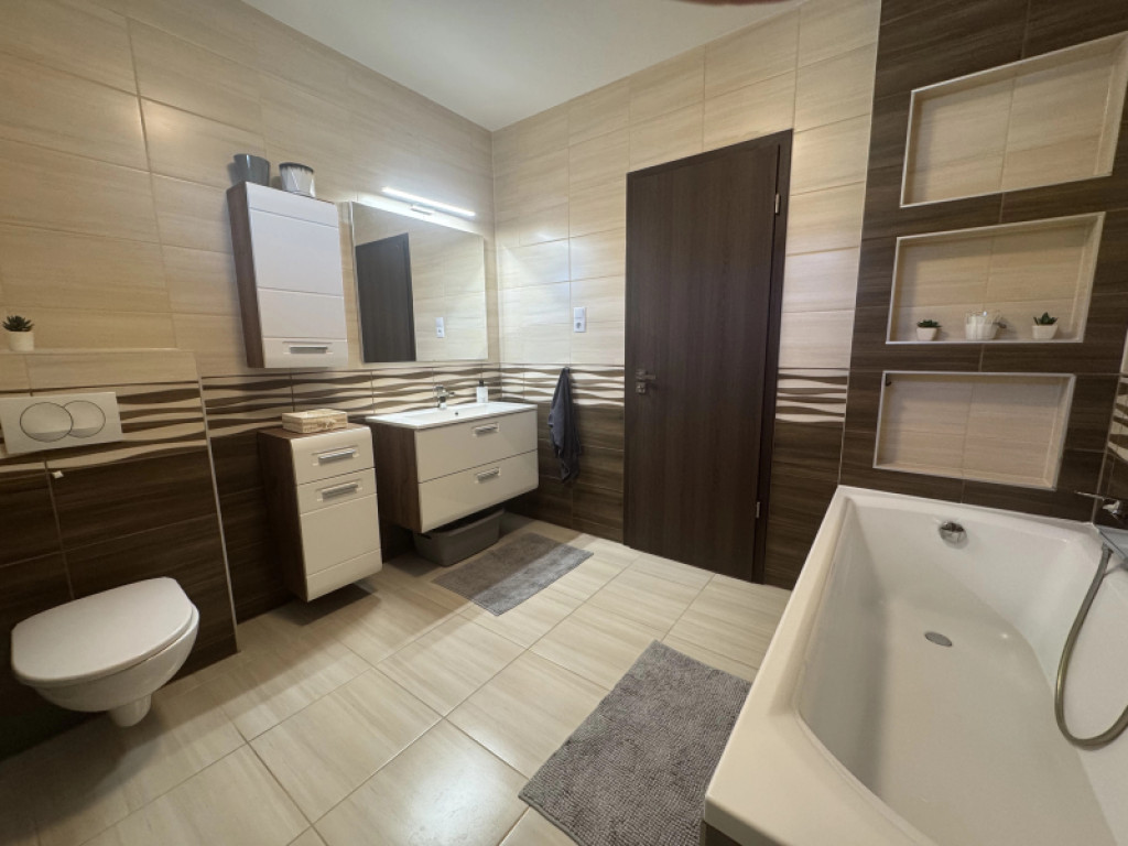 A környék biztonságos és csendes, ideális a családos élethez. A közlekedési lehetőségek is kitűnőek: a város központja könnyen megközelíthető autóval és tömegközlekedéssel egyaránt.