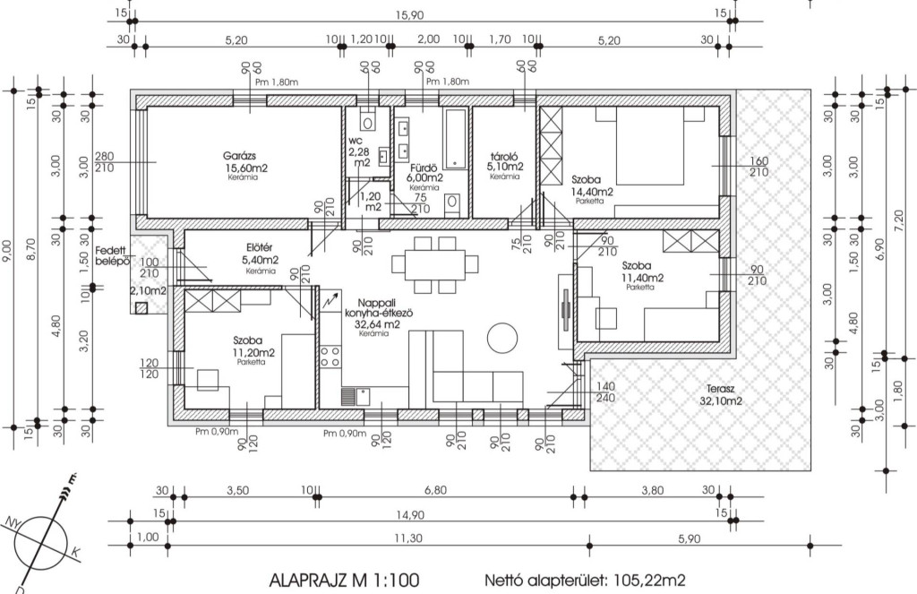 - Alapterület 105 m2
