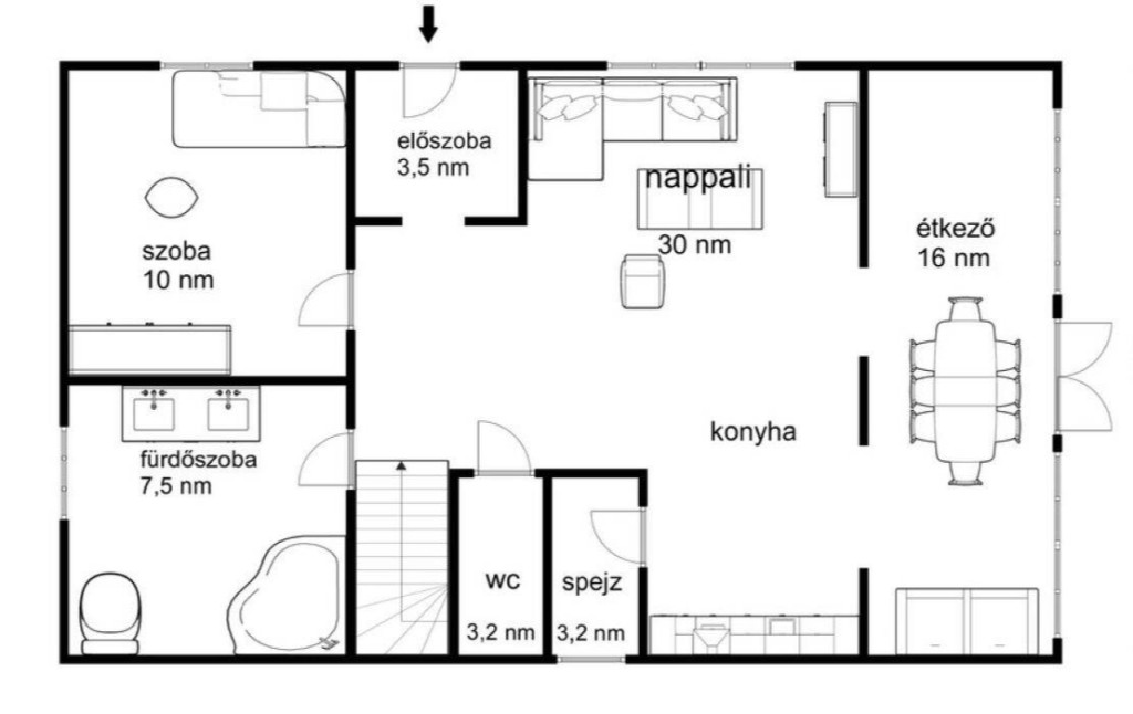 A háziasszonyok kedvence a spejz ami közvetlen a konyha mellett van.Az étkező pedig teljessé teszi a kényelmet és a varázslatos hangulatot.Nem mellesleg itt még egy dolgozó szoba is elfér.