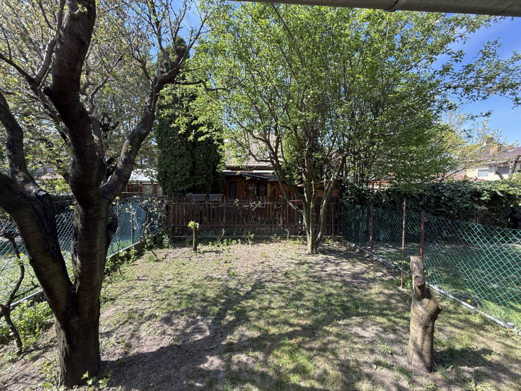 A hátsó kert kb. 70 m²-es, melyhez egy 10m²-es terasz kapcsolódik, míg az előkert mérete kb. 30 m².