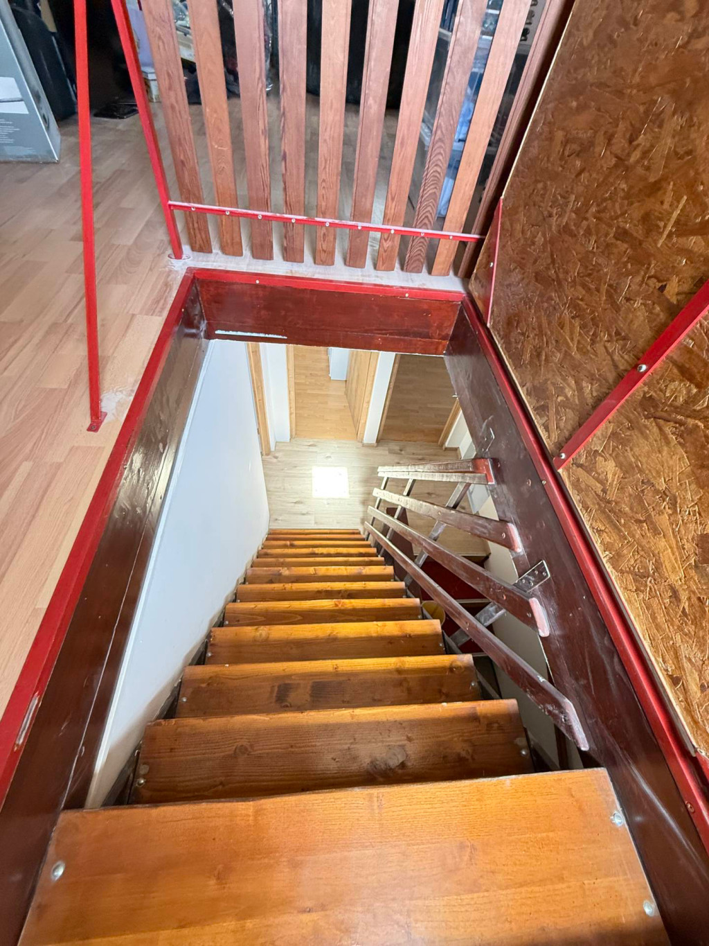 Erről a szintről jutunk fel a padlástérre, amely alkalmas dolgozónak, játszószobának, hasznos alapterülete kb. 5 m².