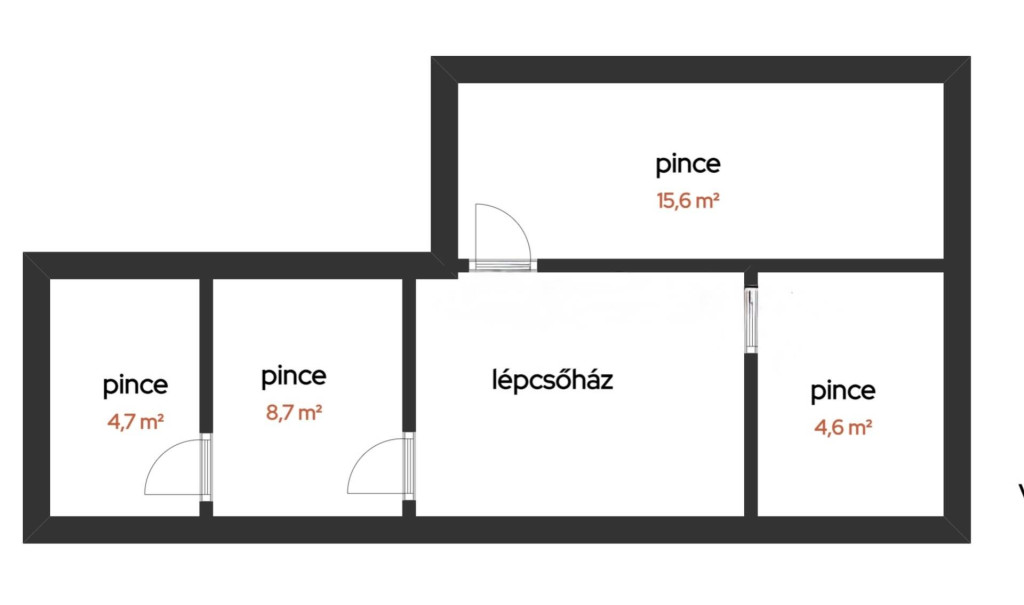 - 33 m² fűtött pince szint (4 helyiségből áll)