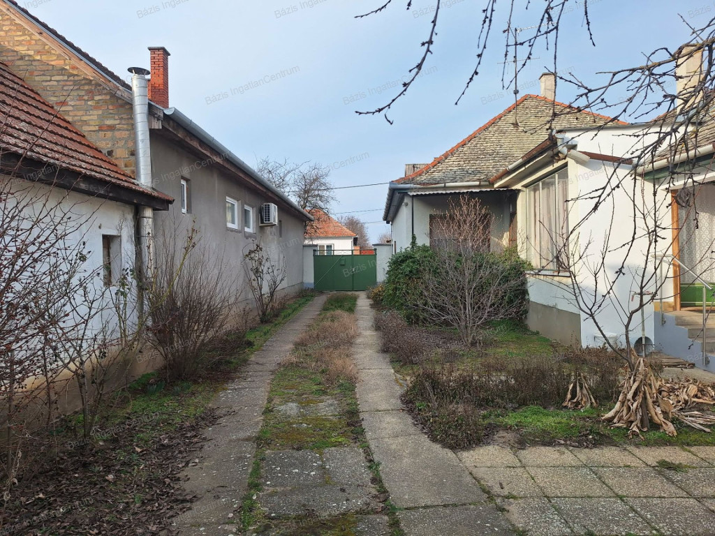 Bács-Kiskun megye, Érsekcsanád kedvelt részén 105 m² alapterületű, tégla építésű családi ház 1644 m²-es telken eladó. Az ingatlan nyugodt, rendezett környezetben található, egy barátságos, jó közösséggel rendelkező faluban. A ház praktikus elrendezésű: két tágas szoba, nappali, konyha–étkező, fürdőszoba, külön WC, előszoba és spájz található benne. Az épület szerkezete stabil, a tetőszerkezet jó állapotú. A födém 15 cm üveggyapot szigetelést kapott, valamint ipari áram is rendelkezésre áll. A fűtés többféle módon megoldott: gázfűtés kondenzációs kazánnal, vegyes tüzelésű kazán, valamint konvektorok is rendelkezésre állnak, így a fűtési mód rugalmasan választható. A főépülethez több melléképület is tartozik, amelyek a lakótér alapterületén felül helyezkednek el: garázs, ólak, kamra, valamint egy külön nyári konyha is megtalálható a telken, így gazdálkodásra, tárolásra vagy műhely kialakítására is kiváló lehetőséget biztosít.A 1644 m²-es udvar tágas, sokféleképpen hasznosítható. Az ingatlan elhelyezkedése kedvező: a közelben iskola, bolt, templom, patika és a faluközpont is könnyen elérhető.