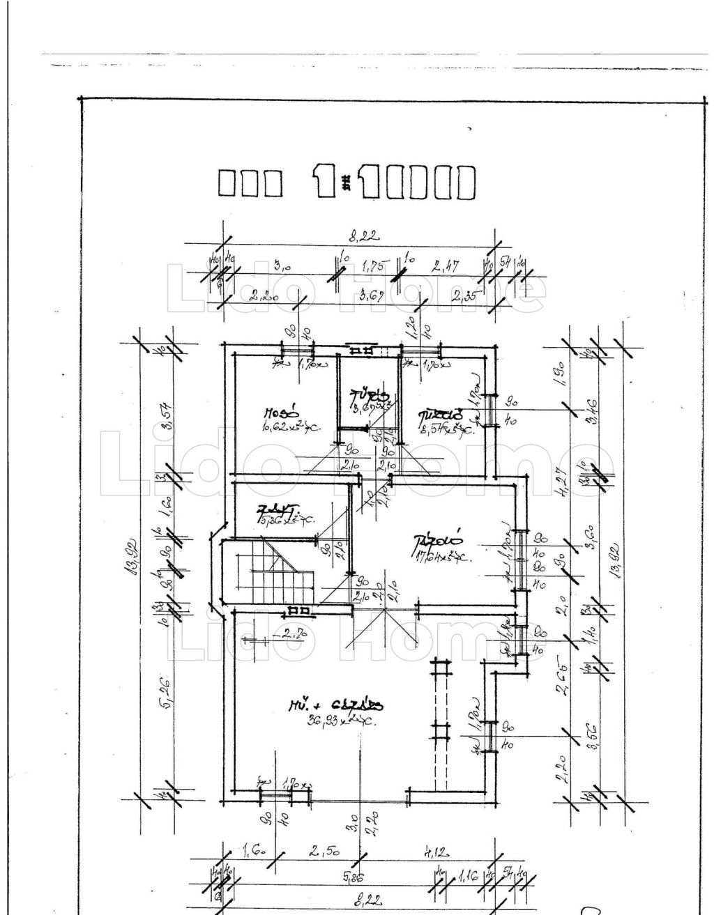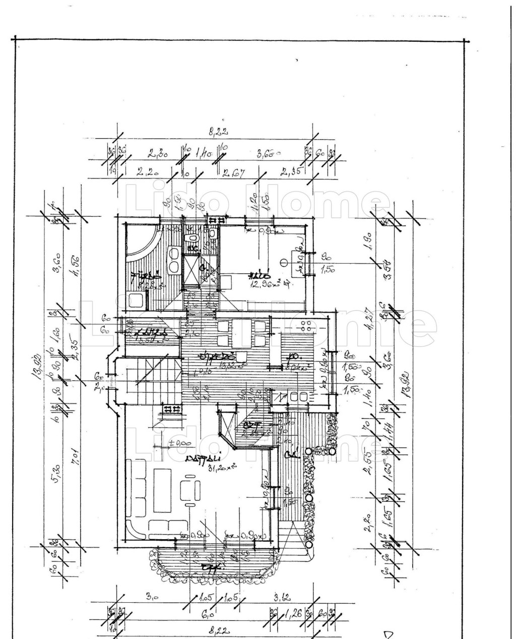 -A földszinten egy erkélykapcsolatos nappali, egy konyha+étkező, kamra, fürdőszoba káddal és zuhanyzóval, egy vendég wc, valamint egy hálószoba kapott helyet.