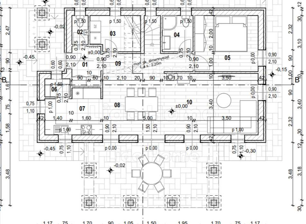 -A ház a nyári nagy melegben is kellemesen hűvös marad, köszönhetően az ÉK-i fekvésnek. Már a kora reggeli órákban árnyékot adó hatalmas terasz a nyári napok igazi menedéke.