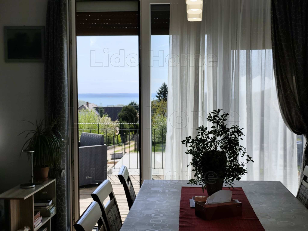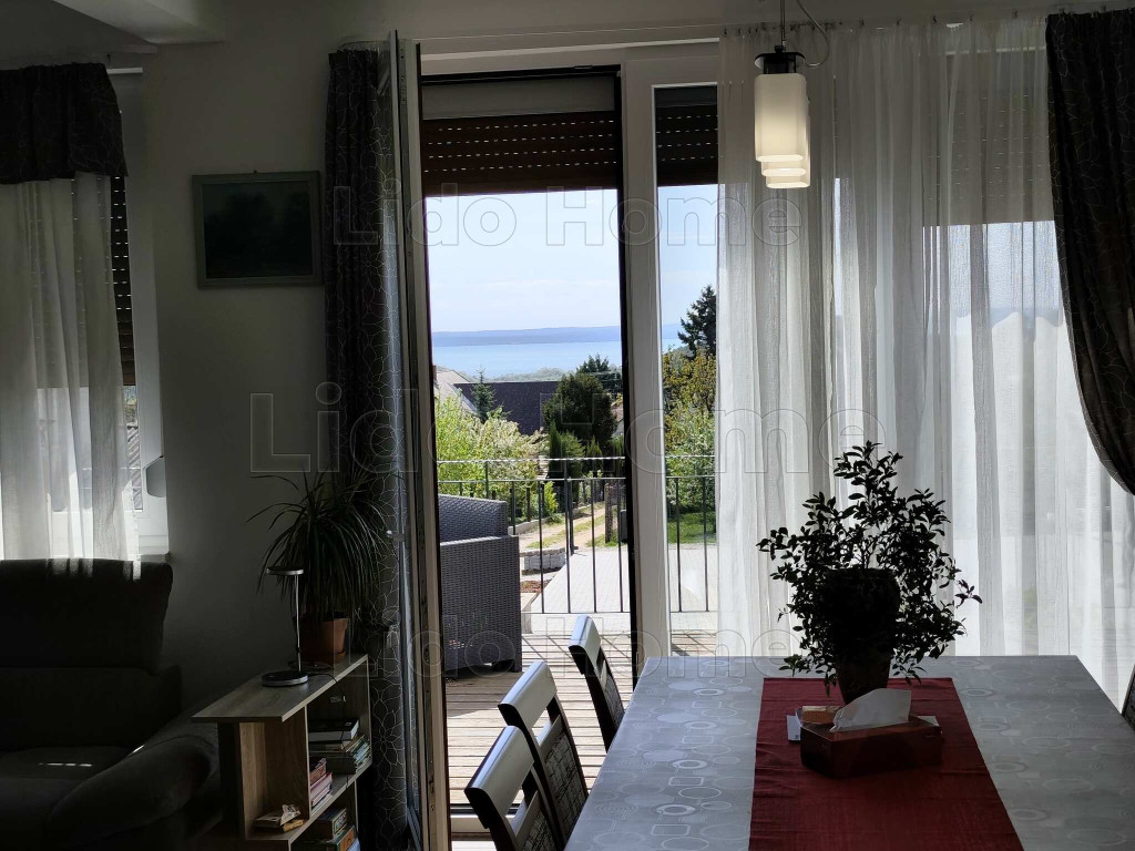 -A délnyugati tájolásnak és a nagy üvegfelületeknek köszönhetően az ingatlan egész nap fényárban úszik, a nappaliból pedig gyönyörű kilátás nyílik a Balatonra.