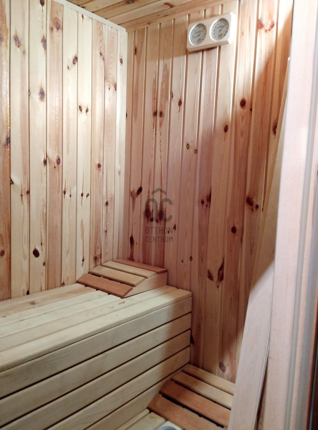 Fót csendes, mégis jól megközelíthető részén kínáljuk megvételre ezt a kivételes családi házat, amely ideális választás lehet családosok illetve több generáció számára is. Az ingatlan egy 662 nm-es telken helyezkedik el, a hátsó részen egy önálló alápincézett garzon lakóházzal. A sok szoba, valamint a szintenkénti, összesen 3 fürdőszoba bőséges teret biztosít a család minden tagjának. A ház jó állapotban van, és modern kondenzációs gázkazánfűtéssel, valamint klímával felszerelt, így az év minden hónapjában kellemes hőmérsékletet biztosít. A tágas nappali a családi együttlétek központja lehet. A beépített bútorok és szekrények praktikus használatot biztosítanak minden szinten. Az elegáns megjelenés mellett a világos, napfényes környezet garantálja a nyugodt pillanatok élvezetét. A szauna pedig a fárasztó napok utáni ellazulás tökéletes helyszínévé válik, így mindenki megtalálhatja a számításait ebben a csodás otthonban.A földszinten terasszal csatlakozik a hátsó kerthez, míg az emeleti szobákhoz erkélyekre lehet kimenni, amelyek tökéletes teret biztosítanak a szabadban való pihenéshez. A rendezett kert automata öntözőrendszerrel van ellátva, megkönnyítve a kertgondozást. A környék biztonságos és csendes, ideális a gyermekek számára. A közlekedési lehetőségek is kiválóak: a tömegközlekedés könnyedén elérhető, így a főváros közelsége és a gyors eljutás lehetősége miatt a mindennapi ingázás sem jelent problémát. Az autós közlekedés szempontjából is előnyös, hiszen a környező főbb közlekedési útvonalak gyorsan elérhetőek. Ez a tehermentes ingatlan prémium kivitelezésének és egyedi tervezésének köszönhetően nem csupán otthon, hanem egy tökéletes befektetési lehetőség is. Bízunk benne, hogy ez a különleges ingatlan felkeltette az érdeklődését.Amennyiben további kérdései lennének, vagy szeretné megtekinteni a házat, keressen bizalommal akár hét végén is! Szívesen állunk rendelkezésére, hogy segíthessünk Önnek a legjobb döntés meghozatalában.