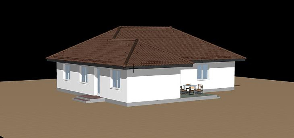 A ház korszerű, energiatakarékos hőszivattyús rendszerrel és padlófűtéssel kerül átadásra, 3×20A villany kapacitással, kb. 70 kiállással.