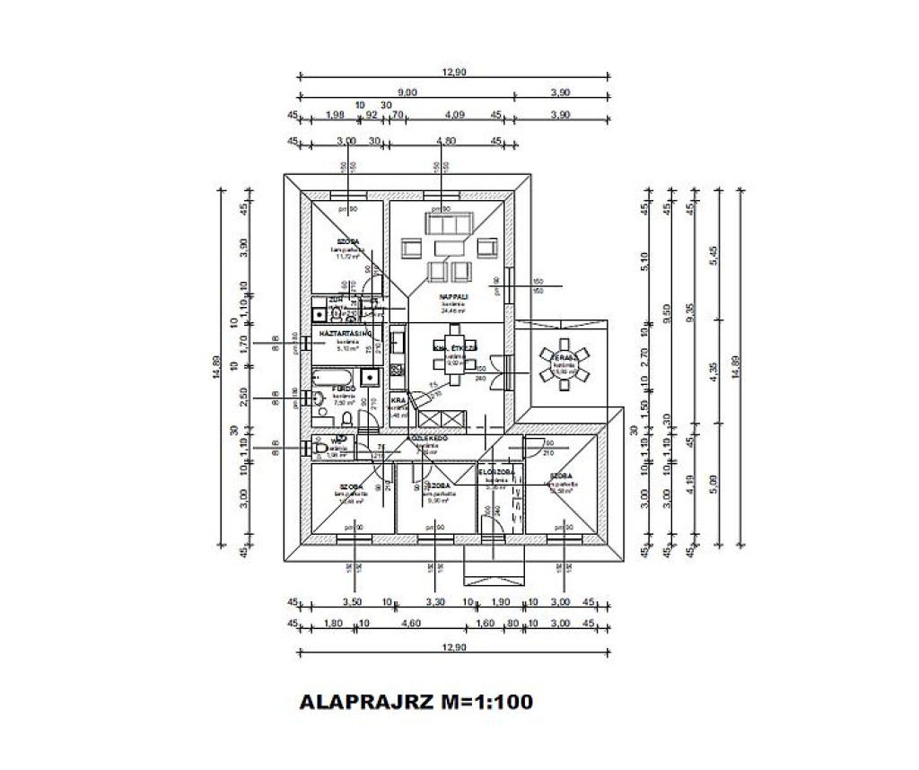 A vételár tartalmazza az utcafronti kerítést kapukkal, a járdát, az 5 m-es kocsibeállót, valamint a teraszt is.