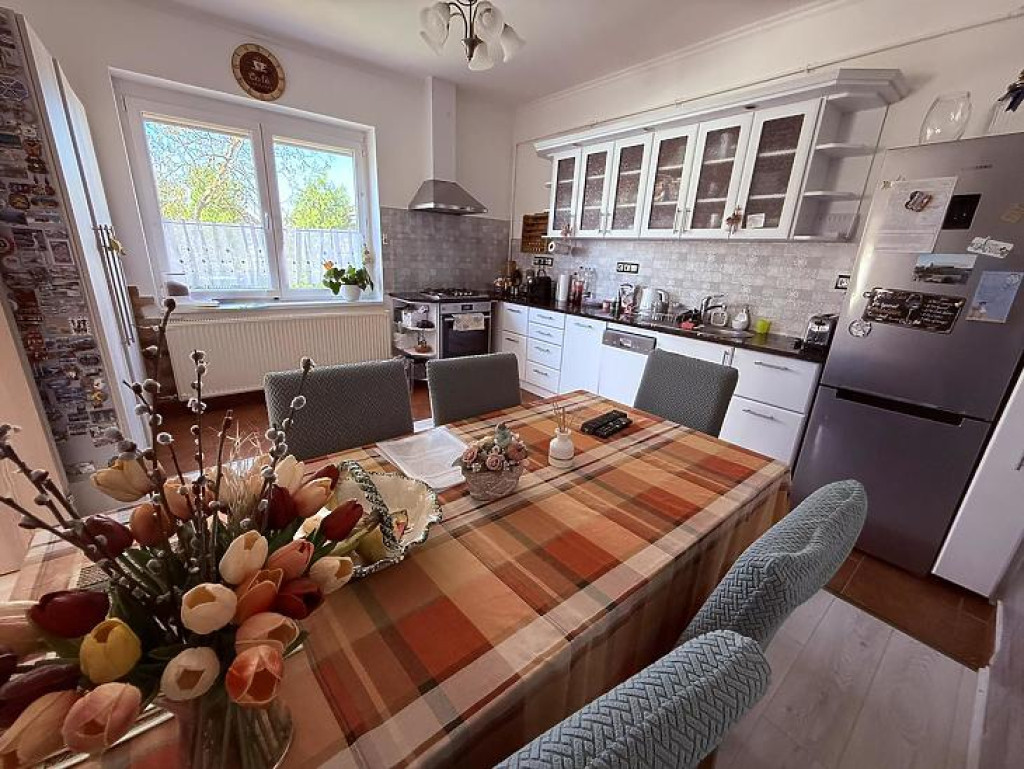 Eladásra kínálunk Fót közkedvelt részén, Kisalagon egy 170 nm-es, jó állapotú, szigetelt családi házat 1219 nm-es telken. Az ingatlan két külön bejáratú, de igény szerint egybenyitható lakóegységből áll, így ideális több generáció együttélésére vagy befektetésnek is.A felső lakás kb. 105 nm, tágas nappalival, 2 hálószobával beépített szekrényekkel, külön gardróbbal, konyha-étkezővel és kádas-zuhanyzós fürdővel. Műanyag, dupla üvegezésű nyílászárók szúnyoghálóval, részben elektromos redőnyökkel, 2 klíma (ebből egy 3,5 kW-os), a fűtést Ariston kondenzációs kazán biztosítja.