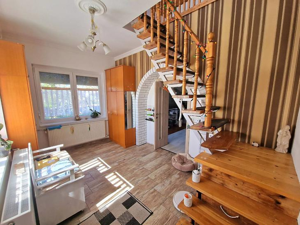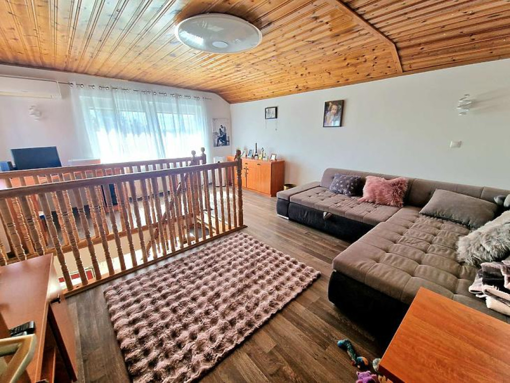 A ház alsó szintje 1978-ban, a felső az 1990-es években épült, folyamatosan karbantartott, jó állapotú. Részben réz villanyvezetékekkel, 3×16 fázissal rendelkezik. A víz és villany közös, a gáz részben külön rendszerről működik. D-i fekvésének köszönhetően egész nap világosak a terek.