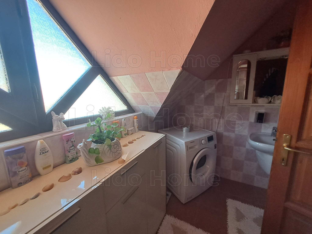 A masszív, 45 cm-es falazatú, cseréptetős ingatlan padlás felől szigetelt. A földszinten tágas nappali, konyha, fürdőszoba és külön WC található, míg az emeleten 2 szoba, egy második fürdő és egy nagy nappali került kialakításra.