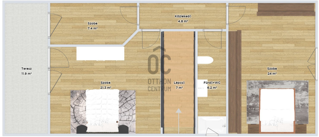 A ház két szintes, nettó 110 m2-es, egy nappali és 3 hálószobás.
