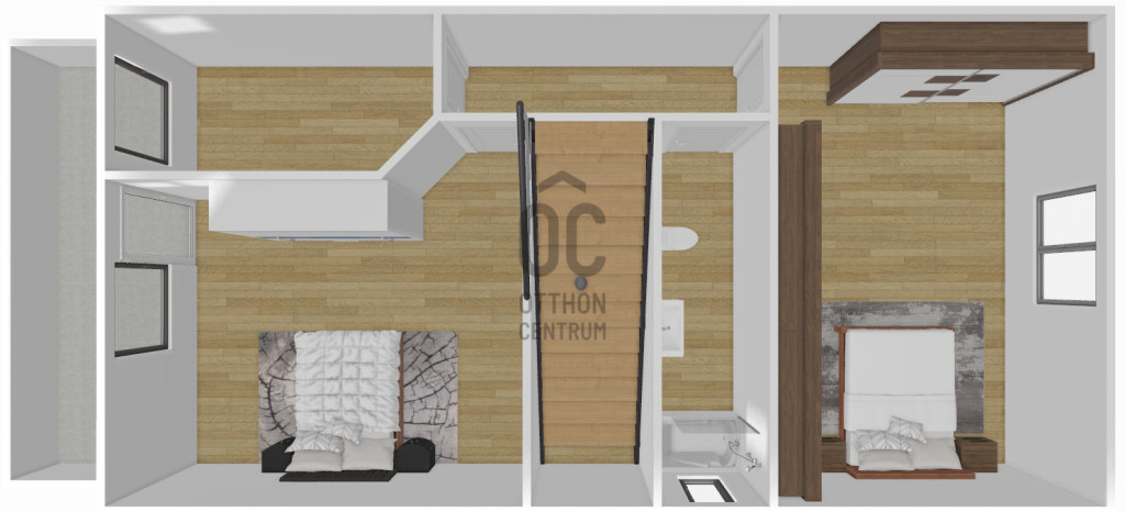 Az épület szigetelt, a fűtés egy vadonatúj gázkazán által van biztosítva, a hűtést minden helyiségben klímák látják el.