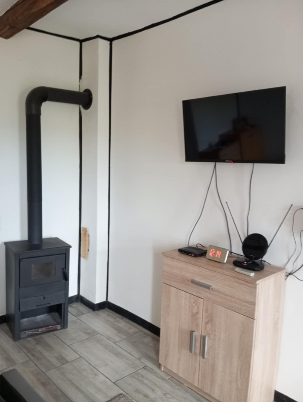 Fűtés: fatüzelésű kandalló + emeleti hűtő-fűtő klíma