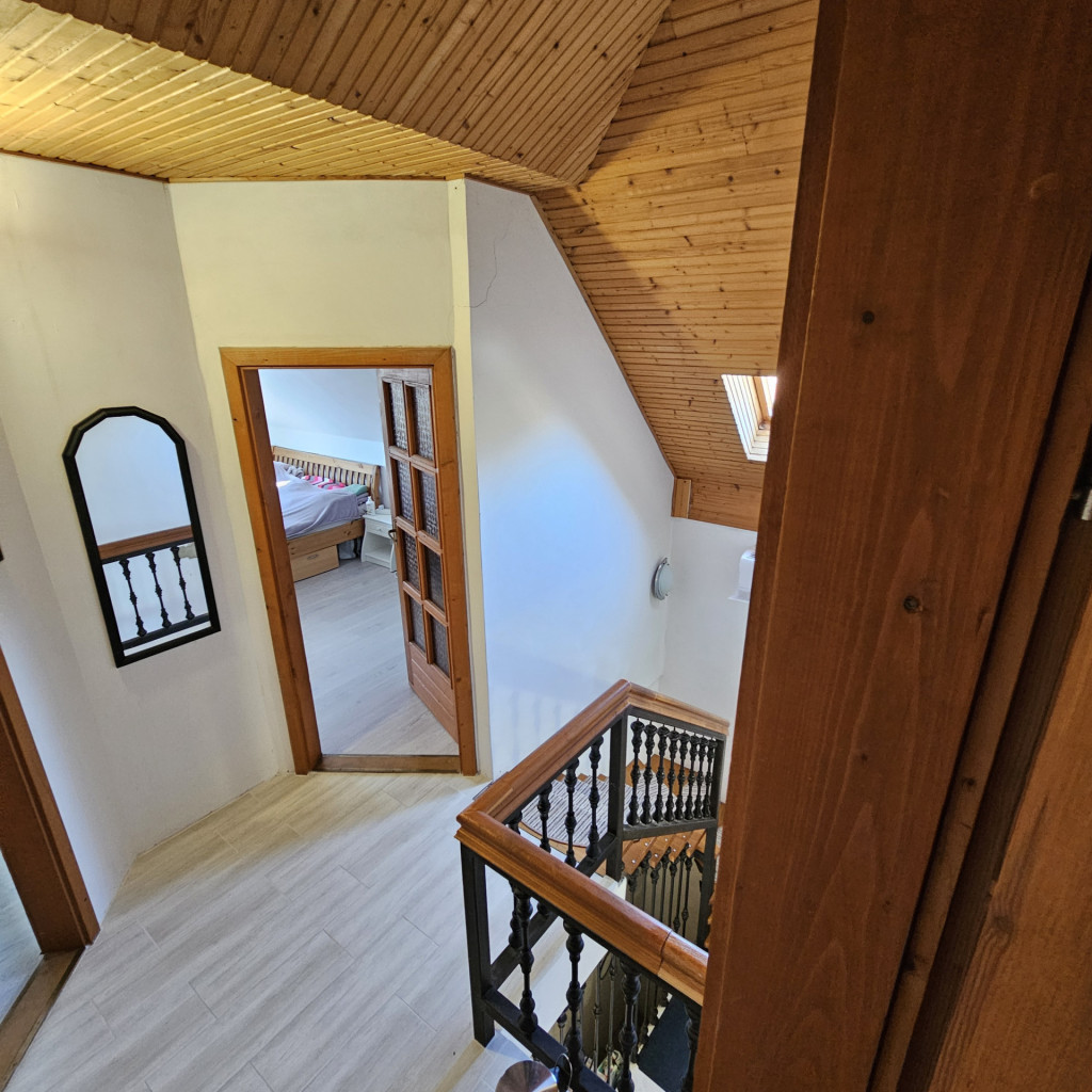 A házban 4 tágas szoba, egy világos nappali, modern konyha, valamint egy zuhanyzó, külön WC és egy fürdőszoba kapott helyet.
