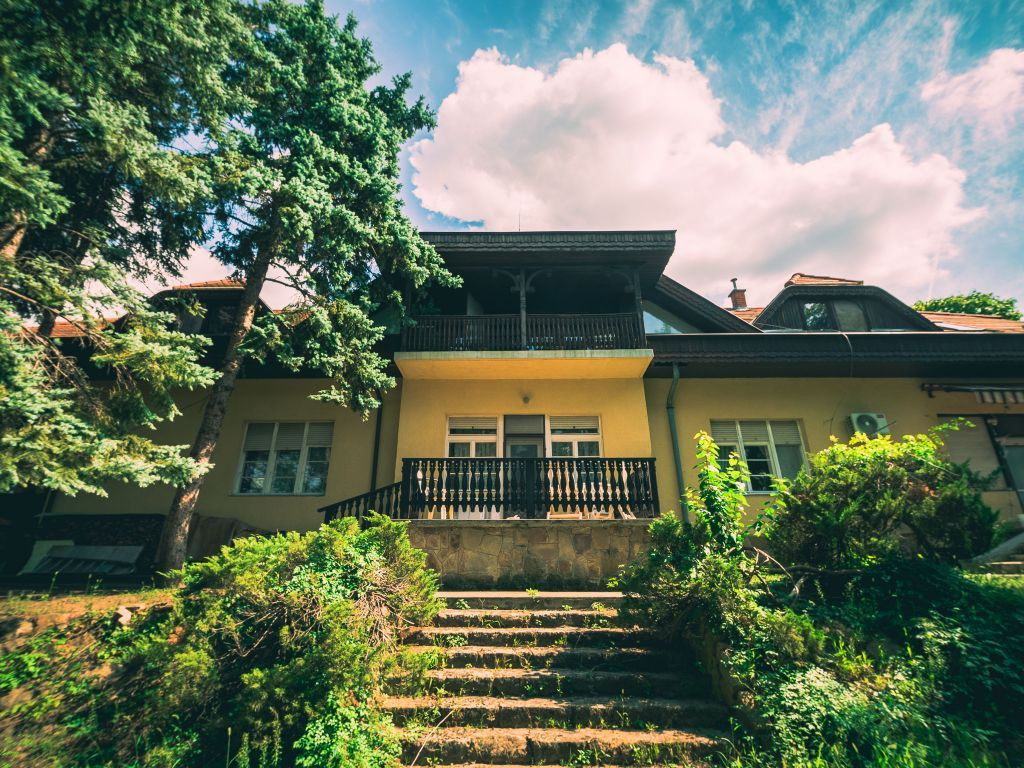 Az 1930-as években épült villaépület egy hangulatos, gondozott 2200 nm-es saroktelken található. A telekre két székelykapun keresztül jutunk be, a gépkocsik számára készült kapu távirányítású! A fákkal körbevett ház kívülről eredeti formáját megőrizte, belül viszont három önálló lakásra osztott. Ebből kettő egymás felett van, a harmadik pedig egy belső kétszintes lakás. A két lakás különbejáratú, de egy belső lépcső is összeköti őket, továbbá közös kerten, és két fedett gépkocsi-beállón osztoznak!